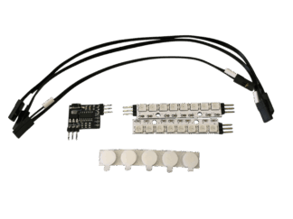 1 weißes LED-Set oder 2 LED-Sets einer beliebigen anderen Farbe oder ein Leuchtmodul. Der Ausgang kann bis 40mA bei 5V. |