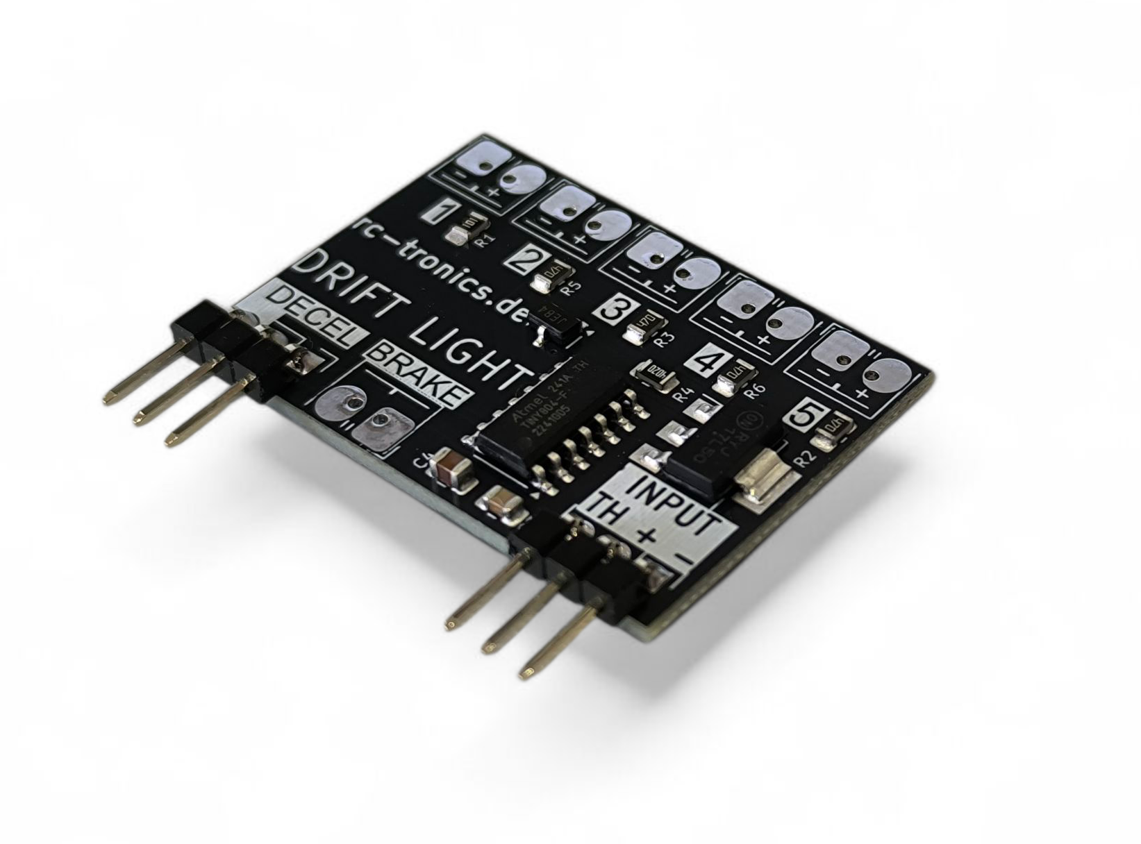 Die DriftLight ist kompatibel zu den Leuchtmodulen und LED-Sets von rc-tronics.de. Pro Ausgang kann ein LED-Set angeschlossen werden.